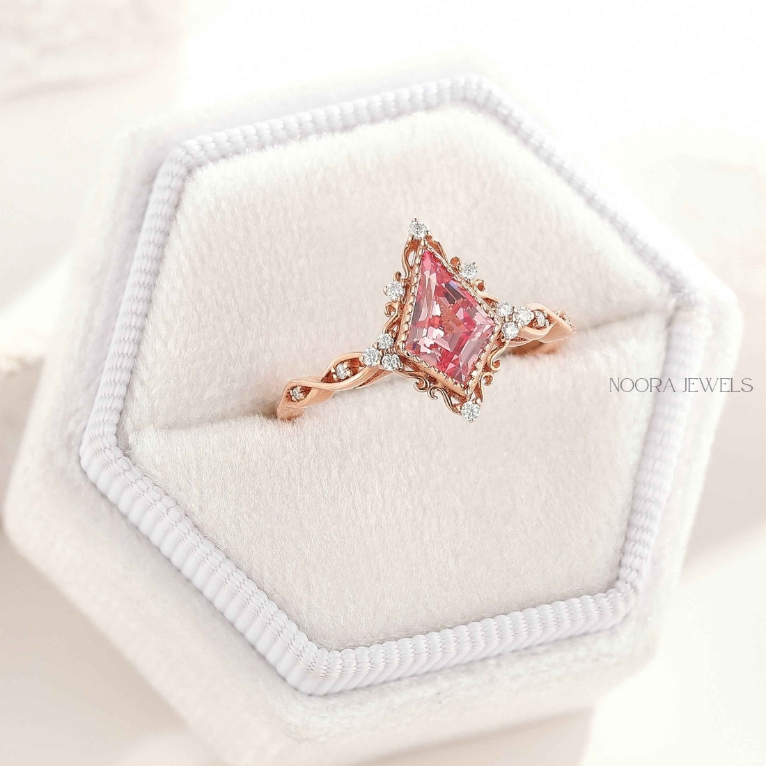Vintage Princess Pink Moissanite Ring in Rose Gold