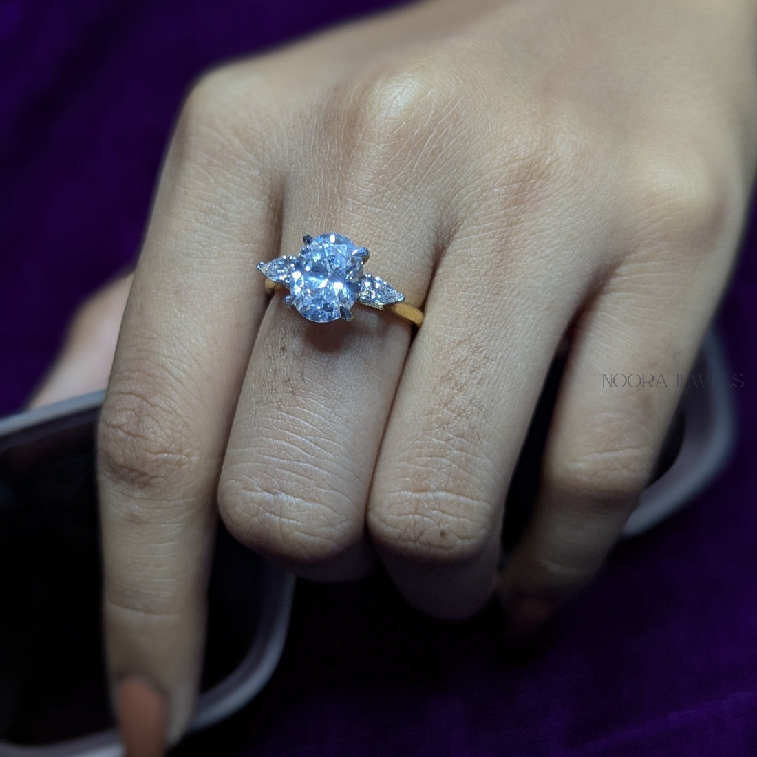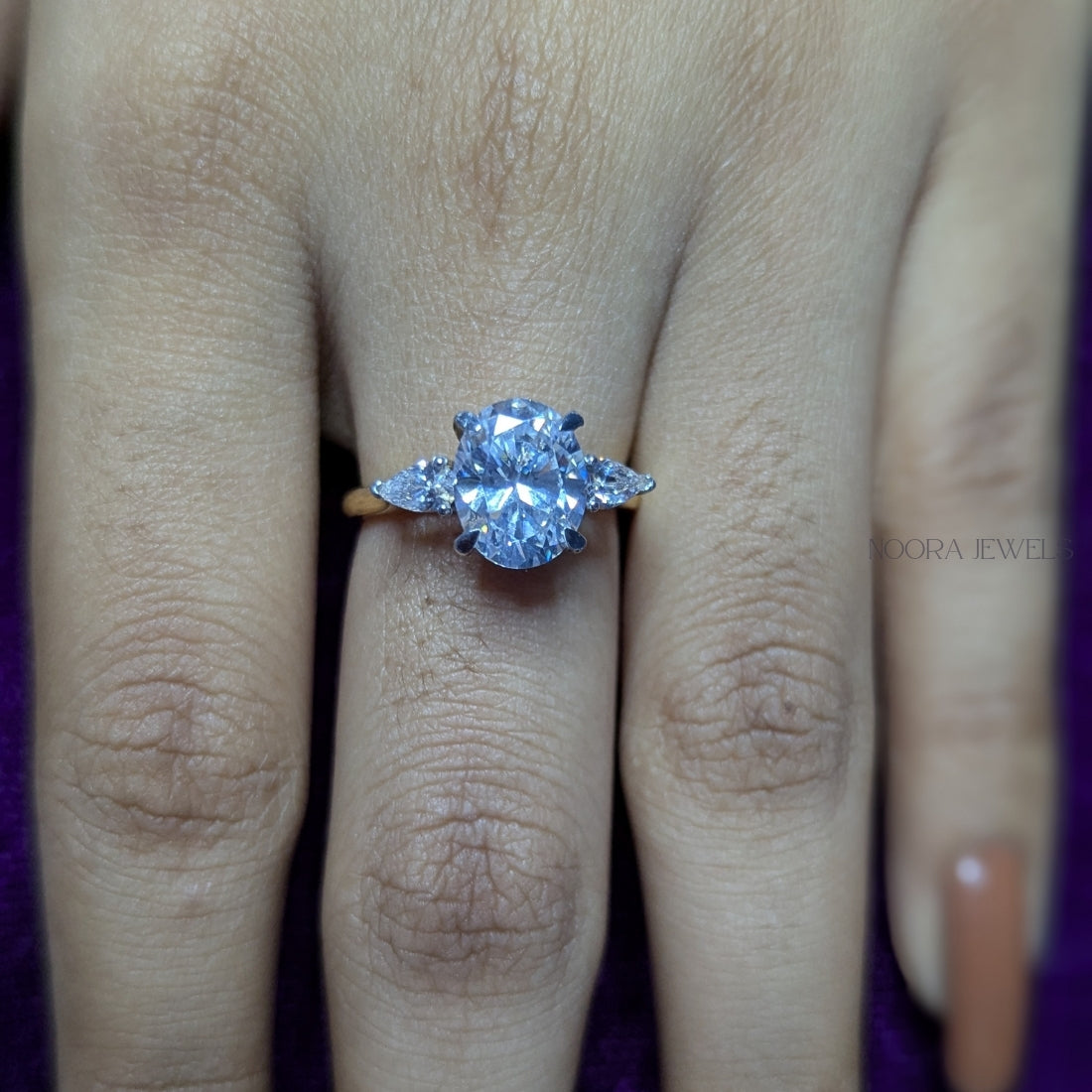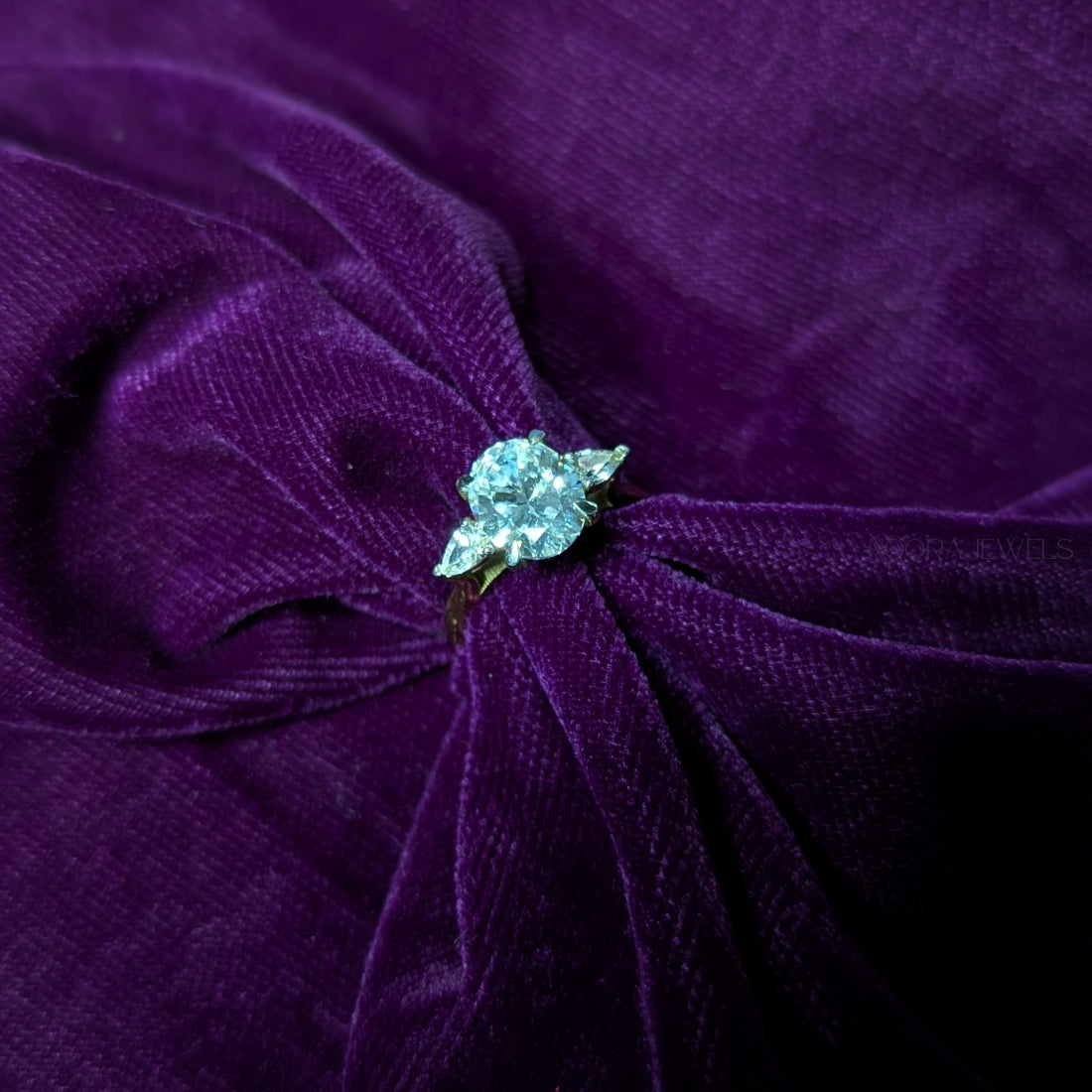 Oval Cut Diamond Ring with Trillion Side Stones